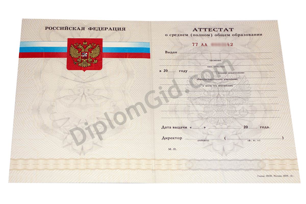 Аттестат школы об окончании 11 классов на государственном бланке ГОЗНАК со всеми предусмотренными степенями защиты. Выдача в 2007, 2008, 2009 годах.
