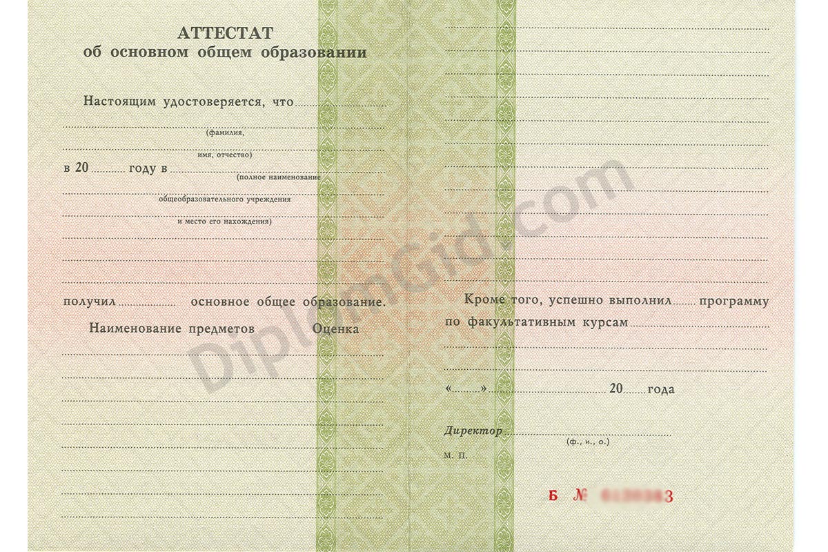 Аттестат об окончании 9 классов 1995-2006 года