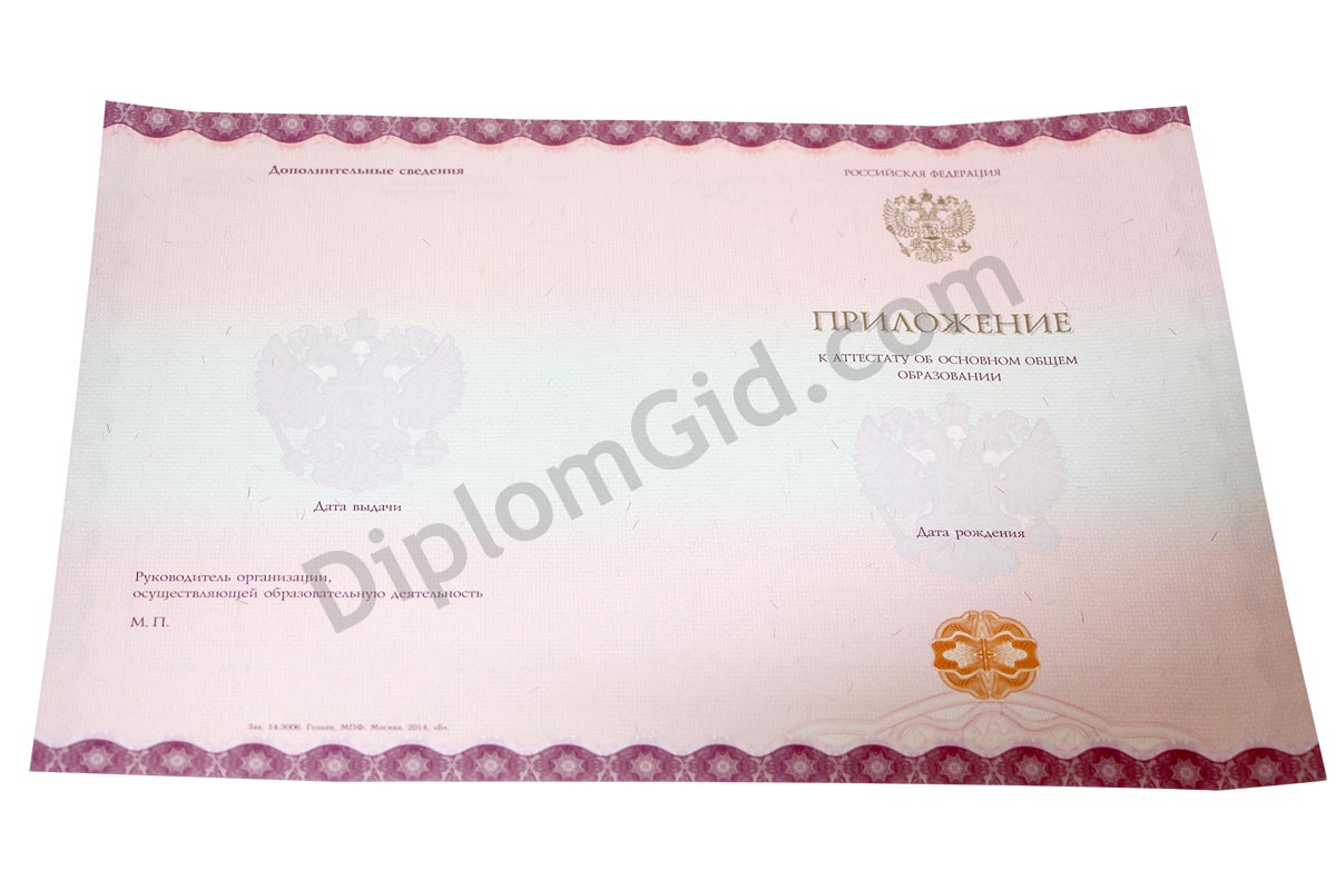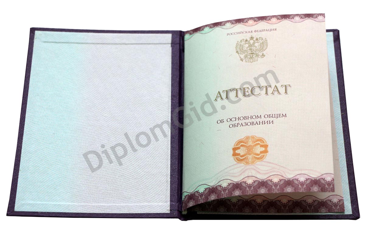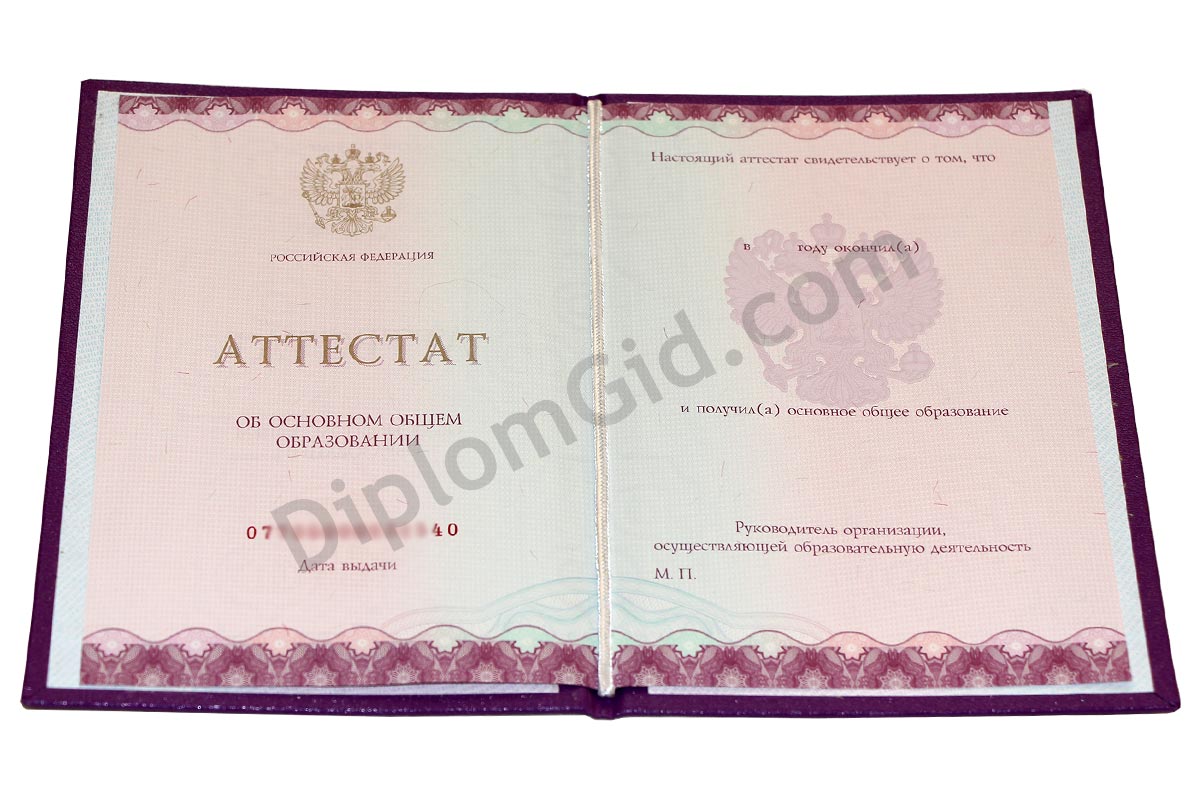 Аттестат школы об окончании 9 классов нового образца на государственном бланке. Образец «Гознак» со всеми степенями защиты. Выдача в 2014, 2015, 2016, 2017, 2018, 2019 годах.